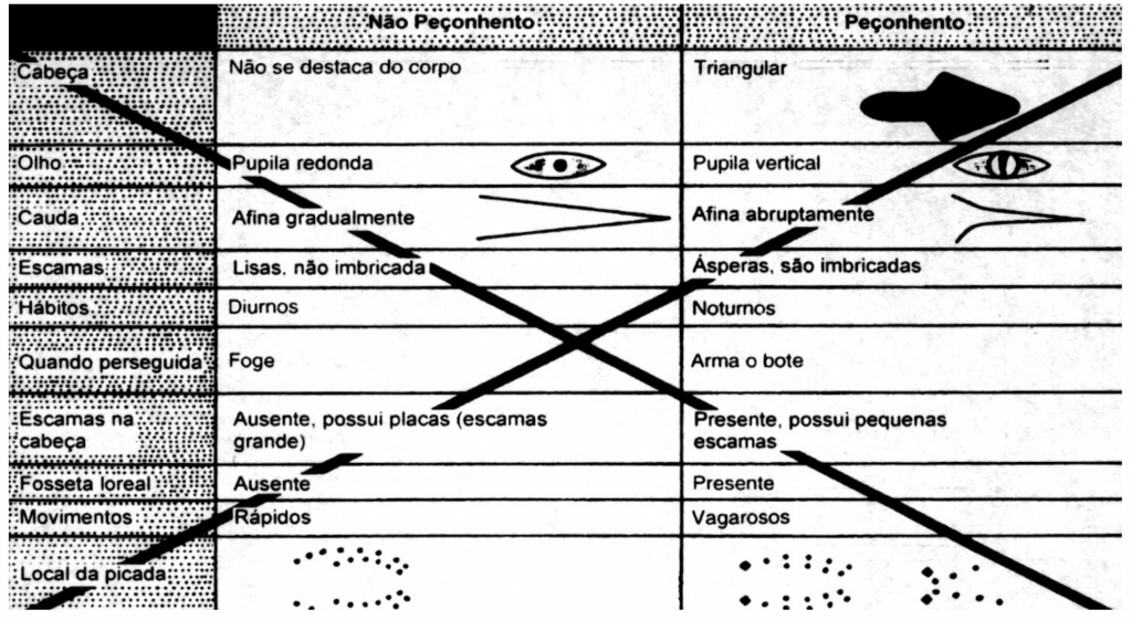 Erroneamente, muitos livros didáticos/materiais de apoio chegaram a disseminar quadros de identificação de serpentes peçonhentas a partir das características corporais.