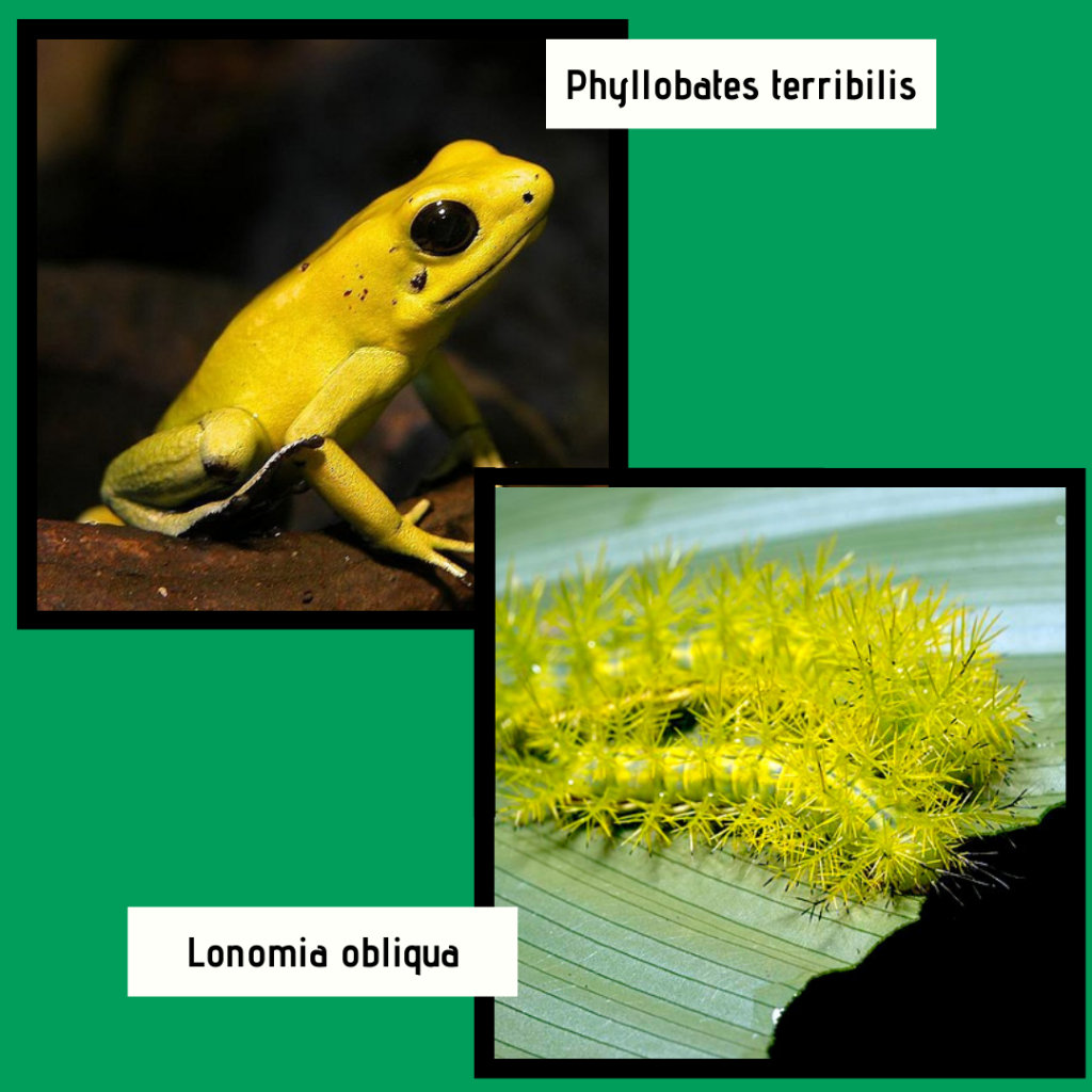 Também é uma substância tóxica, mas que NÃO é disseminada por uma estrutura corporal específica (como a peçonha), o veneno é transmitido de forma passiva quando se tem contato com o animal venenoso. Exemplos de animais venenosos são: taturanas (lagartas de fogo) e algumas espécies de anfíbios.